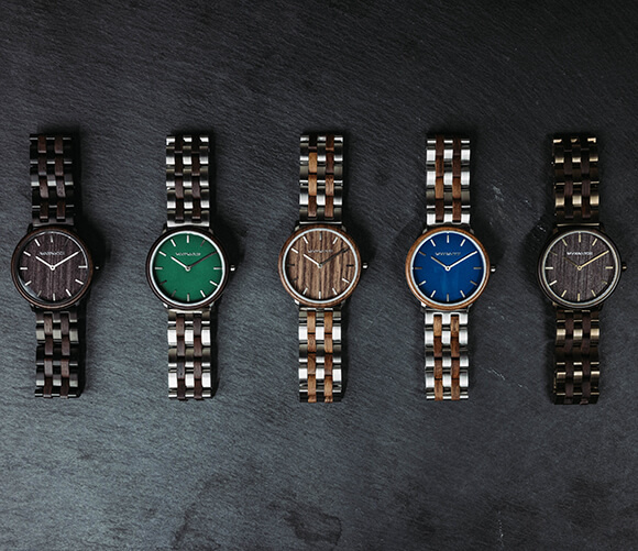 Nos produits sont le résultat de la combination de deux métiers, l'un étant plus ancien que l'autre - les menuisiers font ressortir les moindres détails de notre plus belle sélection de bois, et les horlogers rassemblent toute l'ingénierie dans une merveilleuse pièce d'horlogerie unique en son genre.