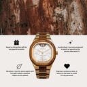 The strap, crafted from brushed metal and natural wood, offers the perfect balance of durability and warmth. Its sturdy build and timeless design ensure the Eternity XII Collection is ready for every moment — from daily wear to special occasions. Easily adjustable with the included tools, the strap provides a comfortable fit tailored to any wrist.