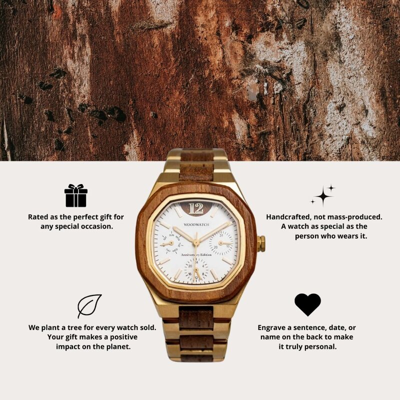 The Eternity XII Collection was created to celebrate twelve years of craftsmanship, connection, and purpose. Inspired by the balance between strength and warmth, each watch unites stainless steel with natural wood, reflecting the harmony that makes life extraordinary. With its refined design and symbolic details, this collection is a tribute to meaningful moments and lasting bonds. The Eternity XII Collection is a reminder to live fully, connect deeply, and make time for what truly matters.
