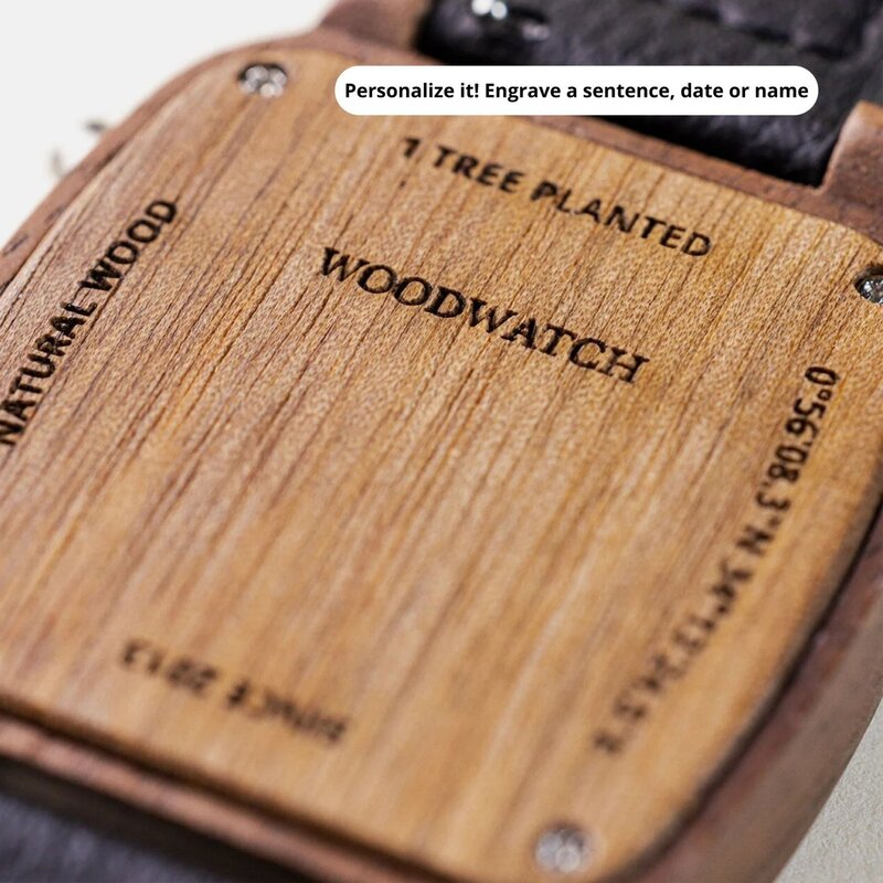 Du willst deinen Lieblingsspruch verewigen oder dein Geschenk personalisieren? Gerne gravieren wir eine persönliche Nachricht auf deine neue WoodWatch – so wird sie absolut einzigartig und zu etwas ganz Besonderem.