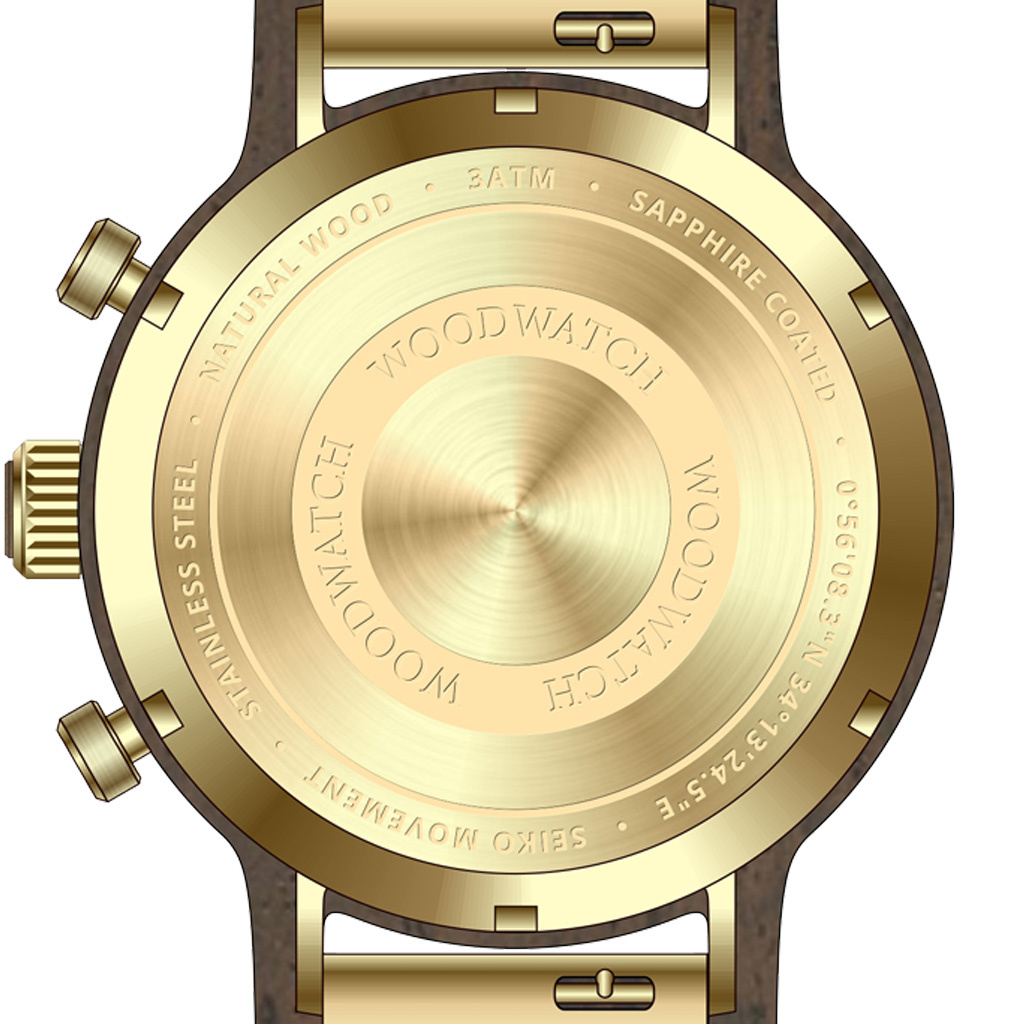 The Chrono Black Forest is made from leadwood and features a double layered deep black dial with golden details.