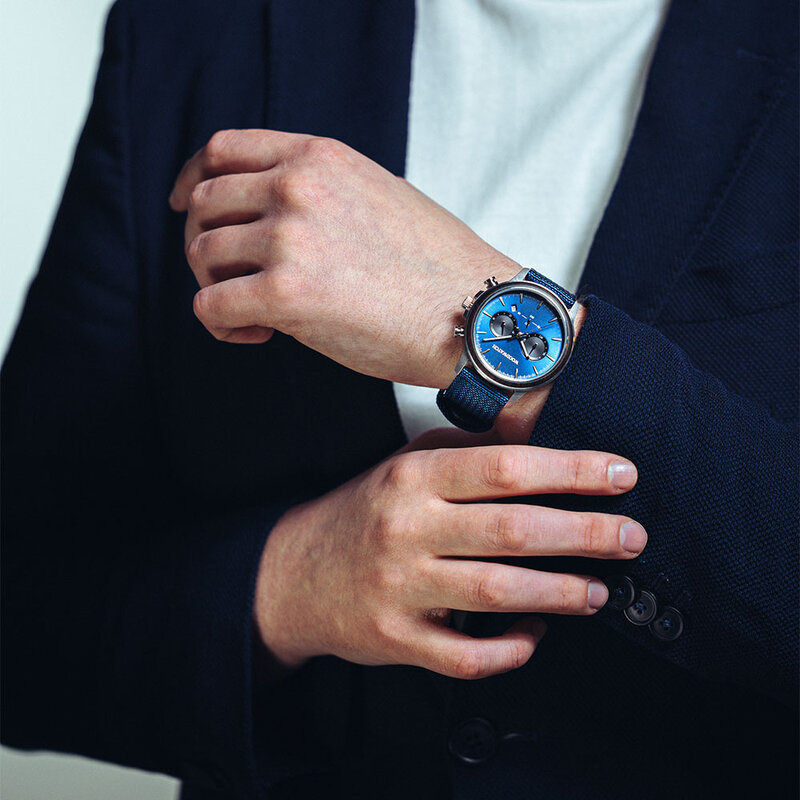 Each watch is a sophisticated blend of design and durability, crafted with meticulous attention to detail. Combining robust steel with eco-friendly wood, and tough canvas straps, we created timeless pieces that epitomize both strength and a commitment to the environment. They are sophisticated yet practical, lasting a long time and caring for nature.