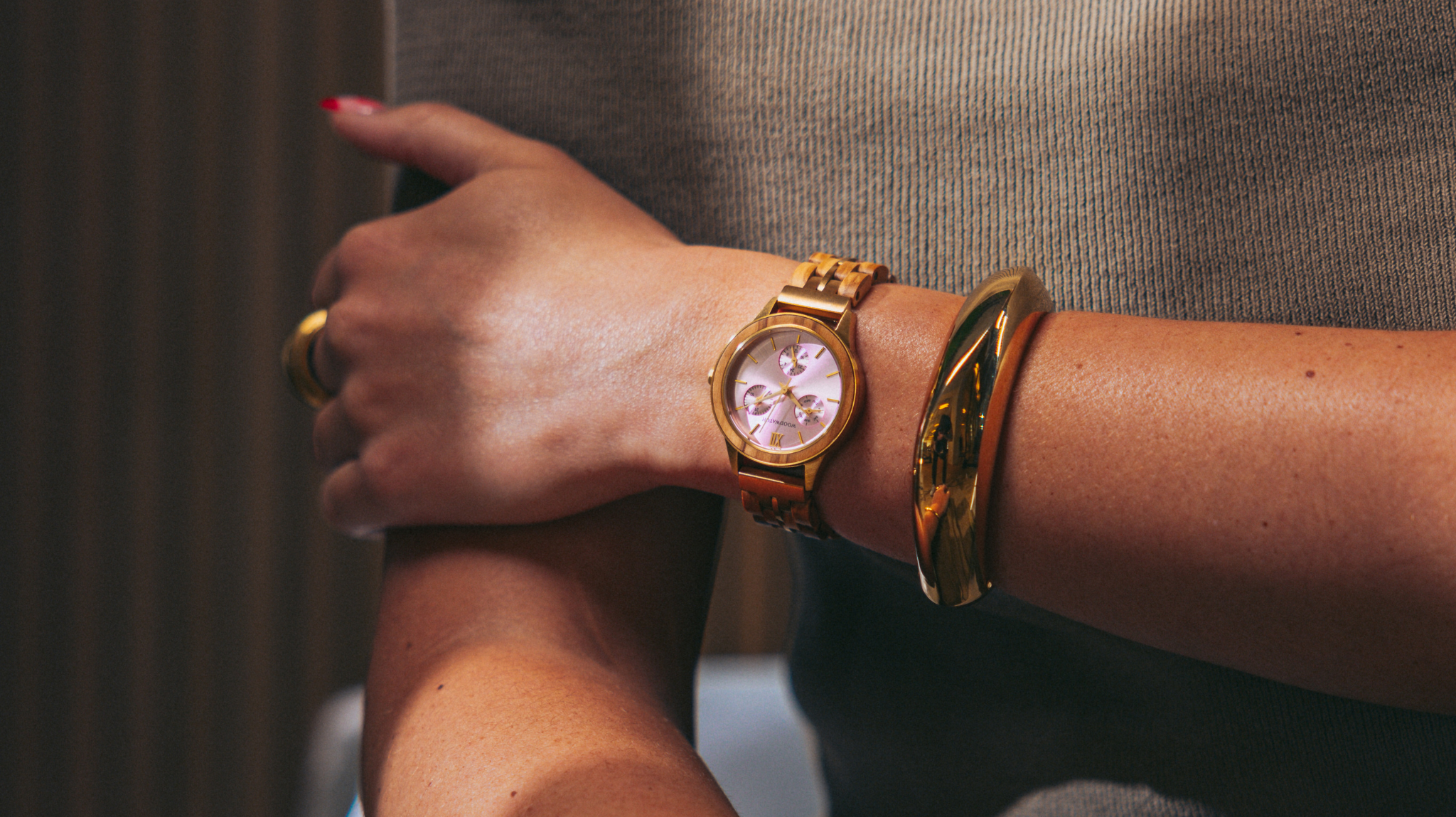 - Rose Champagne — Radiance Collection. Con legno di ulivo e quadrante rosa chiaro, è uno dei romantic just because gifts for her più belli.