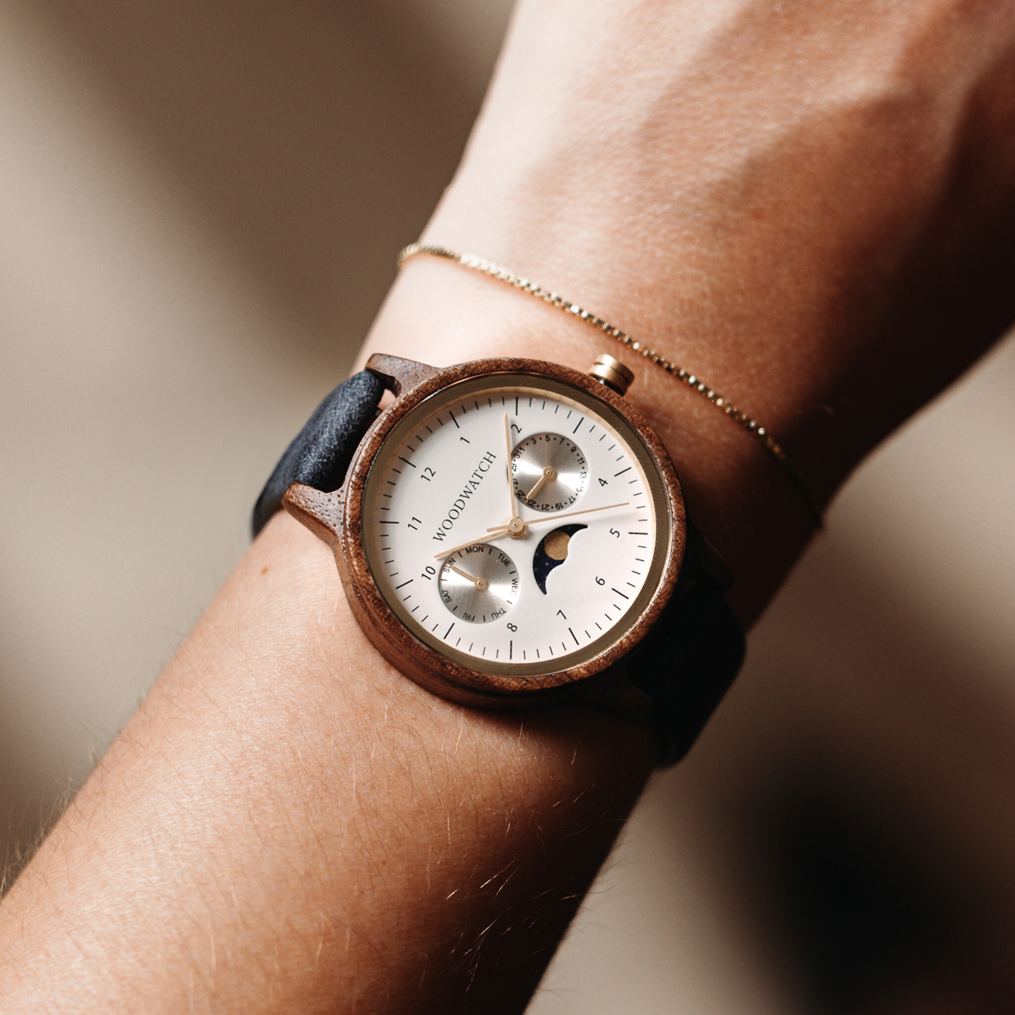 Halloween is een tijd van mysterie, kostuums en de gloed van de maan. De maan staat al eeuwenlang centraal in verhalen over transformatie, geheimen en magie. Wat is er beter om dit Halloween te dragen dan een moonwatch? Bij WoodWatch combineren we de elegantie van natuurlijk hout met de verfijning van een maanfase-complicatie. Of je nu op zoek bent naar een moonwatch voor mannen of een stijlvolle moonphase voor vrouwen, onze horloges geven je seizoenslook een unieke uitstraling.
