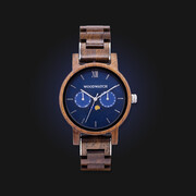 De CLASSIC Collectie vernieuwt de esthetiek van een WoodWatch op een stijlvolle manier. De dunne behuizing heeft een klassieke uitstraling en kenmerkt zich met een maankalender uurwerk en twee extra subdials met week- en maandaanduiding. De CLASSIC Dark Forest is gemaakt van walnoothout uit de Verenigde Staten en heeft een zwart wijzerplaat met gouden details.